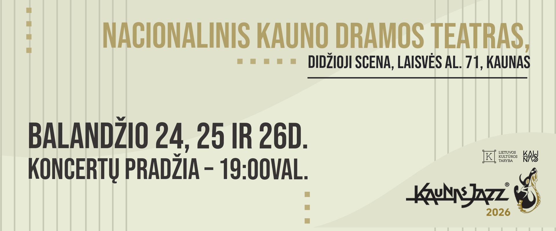Gerbiami „Kaunas Jazz" lankytojai, Atsižvelgdami į Lietuvoje paskelbtą gedulo dieną dėl popiežiaus mirties, reiškiame nuoširdžią užuojautą visai krikščioniškai bendruomenei. Norime pranešti, kad visi suplanuoti „Kaunas Jazz" festivalio renginiai vyks kaip numatyta –